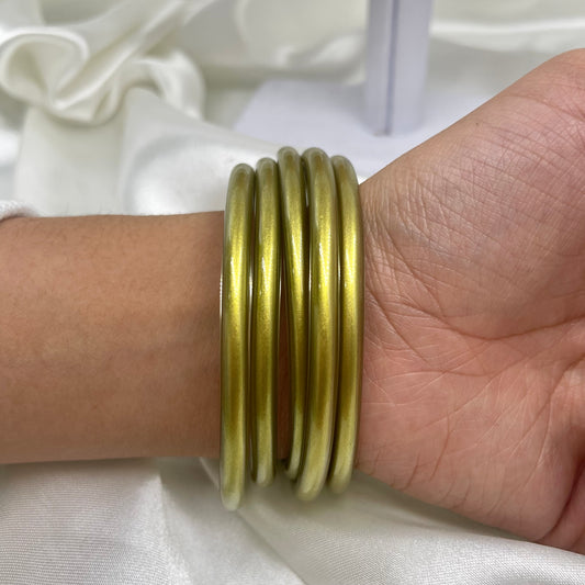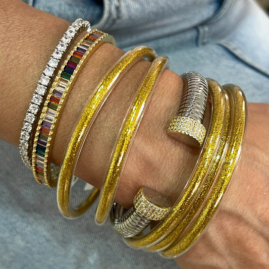 Pulseras Plastic Doradas con Brillos Grandes